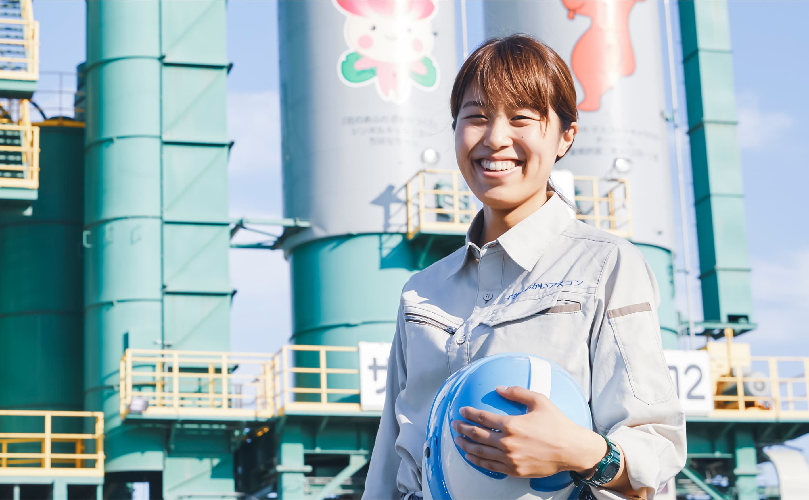 鹿島道路は道路のイメージが強いですが、実は“建築”にも取り組んでいます。主に、工場・流通施設・学校施設・エネルギー施設などを施工しており、設計から施工(安全・品質・工程・原価管理など)までをトータルで管理し、お客様に質の高い作品を提供しています。