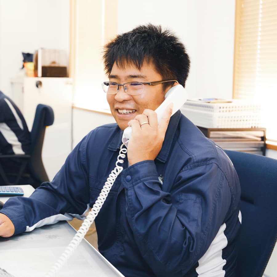 営業営業系の仕事は、お客様から工事やアスファルト合材の受注を行います。受注が無いことには売上も上がらず、会社が回らなくなるという意味でとても重要な仕事です。また、会社の顔として舗装・土木・建築など幅広い範囲の営業に携われるのでやり甲斐のある職種です。